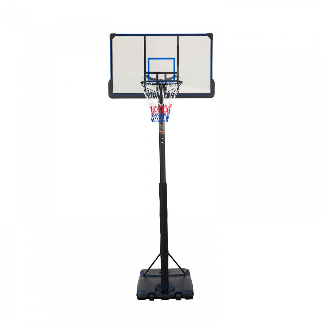 Мобильная баскетбольная стойка с щитом размером 122х72 см (48"). В основание стойки необходимо залить воду или засыпать песок. Для перемещения стойки по площадке в основании предусмотрены ролики. Высота щита регулируется в диапазоне от 235 до 305 см (расстояние от земли до кольца). В комплекте стандартное кольцо Ø45 см черного цвета и всепогодная нейлоновая сетка. Размер щита 122 х 72 см (48") Высота стойки от 235 до 305 см Объем основания 110 л воды/ 120 кг песка Размеры основания 110 х 72 х 20 см Диаметр кольца 45 см Цвет кольца черная Материал щита ПВХ 2,5 мм Толщина щита 3 см (с рамкой) Диаметр стойки (труба) 70 мм Размер упаковки 132 х 86,5 х 28 см Вес нетто/брутто 32 / 34 кг Бренд DFC Страна производства Китай Гарантия 12 месяца