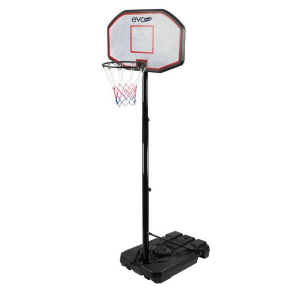 EVO JUMP CDB-001 высококлассная, прекрасно спроектированная баскетбольная стойка, обеспечивающая высокие игровые характеристики и стабильность конструкции. Сверхвместительное основание, наполняемое водой или песком, обеспечивает устойчивость и надежность во время игры. Концептуальный дизайн щита гарантирует привлекательность – баскетбольная стойка не останется незамеченной Вашими гостями! Идеально подойдет для дачного участка, внутреннего двора или сада любых размеров. EVO JUMP CDB-001 имеет телескопическую систему регулировки высоты кольца. Диапазон регулировки 245 – 305 см, имеет 5 положений с шагом 15 см. Телескопический механизм прост в использовании, высота кольца настраивается очень быстро и без помощи дополнительных инструментов. Диаметр кольца равен 45 см, рассчитан для использования мячей максимального размера (размер мяча 7). Металлические компоненты стойки изготовлены из стали, щит из композитного пластика. Колеса в основании позволят без особых усилий переместить баскетбольную стойку, если она не используется.