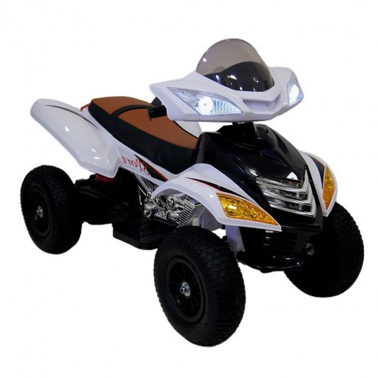 Артикул: E005KX-A-WHITE Квадроцикл Е005КХ-A Световые эффекты: подсветка панели приборов, передние фары, задняя фара. Звуковые эффекты: звук клаксона / звук мелодий. Пульт управления: нет Индикатор заряда батареи: да Включение: кнопка Колеса: РЕЗИНОВЫЕ НАДУВНЫЕ КАМЕРНЫЕ Сиденье: кожаное Скорость: вперед/назад, высокая скорость/низкая скорость, до 5км/ч Медиа-панель: вход для mp3, регулятор громкости. Размер собранного изделия : 114*72*76 см., макс. нагрузка:35 кг, вес: 20,5кг Аккумулятор: 2*6V/7А, Редуктор: 2*12V/12000 обротов.