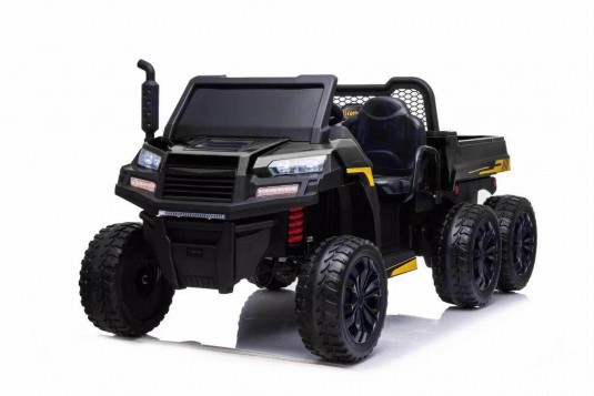 Артикул: Т100ТТ-BLACK T100TT с дистанционным управлением Световые эффекты: фары передние Звуковые эффекты: заводские мелодии Пульт управления: индивидуальный (настраивается по Bluetooh), от батареек 2шт 1,5V/AAA Амортизаторы: да, задние Колеса: каучуковые Скорость: 5-7 км/ч, скорость вперед/назад, высокая/низкая (переключатель под сиденьем) Сидение: кожаное, ремень безопасности 3-х точечный Включение: кнопка (под сиденьем) Кузов управляется (поднимается/опускается) Медиа-панель: USB-вход, mp3-вход, индикатор заряда батареи, TF-вход, Bluetooh Размер собранной модели: 150*79*72см, вес: 32 кг, макс. нагрузка: 60 кг Аккумулятор 2*12V/14АН Редуктор 4*24V (18000 об)