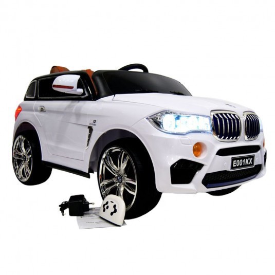 Артикул: E002KX-WHITE BMW E002KX с дистанционным управлением Световые и звуковые эффекты. Подсветка панели приборов, диодные огни фар. Амортизаторы. Задняя подсветка. Пульт управления: индивидуальный (настраивается по Bluetooh) Колеса: EVA-резиновые низкопрофильные (кнопочные) Открываются двери. Возможность перемещения по принципу "Чемодана" (выдвигается ручка и колесики) Открывается капот, стойка-фиксатор капота для легкого демонтажа аккумулятора. Скорость: 3 скорости вперед, одна назад. Сидение: кожаное. 5-ти точечный ремень безопасности. Заводится с кнопки. Вход MicroSD, USB-вход. Индикатор заряда батареи. Размер собранной модели: 123*60*60см, вес: 19кг, макс. нагрузка: 30 кг Аккумулятор: 12V/7А Редуктор: 2*30W