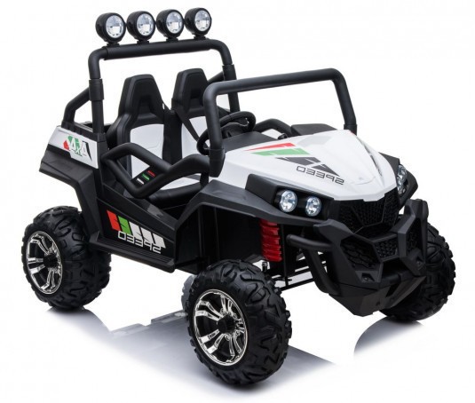 Артикул: T888TT-4*4-24V-SPIDER-WHITE Детский электромобиль T888TT 4WD 24V Полноприводный. Двухместный. Световые эффекты: фары передние (габаритные), задние фары, передние котофоты ( не светятся). Звуковые эффекты: музыкальный руль - звук клаксона/мелодии заводские. Пульт управления: индивидуальный (настраивается по Bluetooh), от батареек 2шт 1.5v AAA. Амортизаторы: да, задние. Колеса: каучуковые. Скорость: Скорость вперед, одна назад. Плавный ход. Коробка переключения - автомат. Сидение: двухместное КОЖАНОЕ, два ремня безопасности. Включение: кнопка. Медиа-панель: SD-вход, FM-радио, Bluetooh - воспроизведение музыки через телефон, с помощью соединения по Bluetooh. Размер собранной модели: 136*93*104см, вес: 32,4 кг, макс. нагрузка: 59 кг. Открывается капот, открываются двери. Аккумулятор: 24V/7А Редуктор: 4шт*24V*13500 об