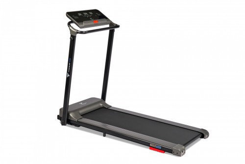 Titanium One T55 SС относится к классу компактных складных беговых дорожек продвинутого уровня. Отличительными особенностями тренажера являются достойные для такого класса технические характеристики, полноформатная консоль, безопасность и дизайн, при этом стоимость Titanium One T55 SС очень демократична. Дорожка подходит для широкого круга пользователей и обеспечивает все базовые потребности тренировки. Главной проблемой компактных беговых дорожек является низкий уровень безопасности. На дорожках такого типа поручни либо отсутствуют вообще, либо выполнены из тонкого металлического профиля, то есть удержаться при потере равновесия практически невозможно. По сути дела, на компактных дорожках можно только ходить, и то с максимальным соблюдением концентрации внимания. Поэтому пользователям среднего и пожилого возраста, со слабыми суставами и позвоночником, а также находящимся на реабилитации заниматься на компактных дорожках не рекомендуется. В отличии от них, полноформатная консоль Titanium One T55 SС с надежными поручнями и ключом безопасности позволяют тренироваться абсолютно любой категории пользователей, которым важна безопасность тренировки. Кроме того, максимальная скорость дорожки составляет внушительные 12 км/ч, то есть она вполне походит для полноценного бега. И это безопасно. Второй аспект – информативность. Titanium One T55 SС выводит на экран тренировочного компьютера все основные параметры тренировки – время, дистанцию, скорость и сожженные калории. Можно выбрать одну из 12 предустановленных тренировочных программ либо воспользоваться одной из трех программ обратного отсчета (время, дистанция или калории). Здесь есть даже мультимедийная составляющая, на встроенные динамики можно вывести аудио файлы со своего смартфона. Небольшая, но приятная опция – подставка под телефон или смартфон. Во время тренировки можно включить фильм или сериал, это отлично помогает справиться с однообразием тренировок. Наконец, все управление происходит через консольные клавиши, постоянно держать в руках пульт нет необходимости. За движение отвечает надежный двигатель американской Leeson Electric мощностью 1.75 л.с. постоянного тока. Размеры бегового полотна составляют 120 см. в длину и 40 см. в ширину – такие параметры считаются базовым стандартом для полноценной ходьбы и бега. Амортизационная система представлена 2-мя полиуретановыми амортизаторами soft-WAVE™ – это неплохой уровень начальной амортизации, хотя для создания дополнительной мягкости лучше заниматься на ковре или специально предназначенном для этого полиуретановом коврике для фитнес оборудования. Собрать беговую дорожку достаточно просто. Стойки консоли крепятся на 2-ух винтах, процесс сборки и разборки составляет около минуты. Дорожка удобна в хранении и занимает минимум места – ее толщина в сложенном виде составляет всего 16 см. Отдельно стоит сказать об интеграции Titanium One T55 SС со сторонними приложениями, существенно расширяющими возможности тренировки. Первое приложение – Fitshow – является полностью бесплатным. Fitshow предоставляет набор дополнительных тренировочных программ, сохраняет и анализирует статистику. Здесь можно соревноваться с другими пользователями, создать сообщество и добавить друзей, поделиться результатами в соцсетях. При желании можно управлять тренажером прямо со 
