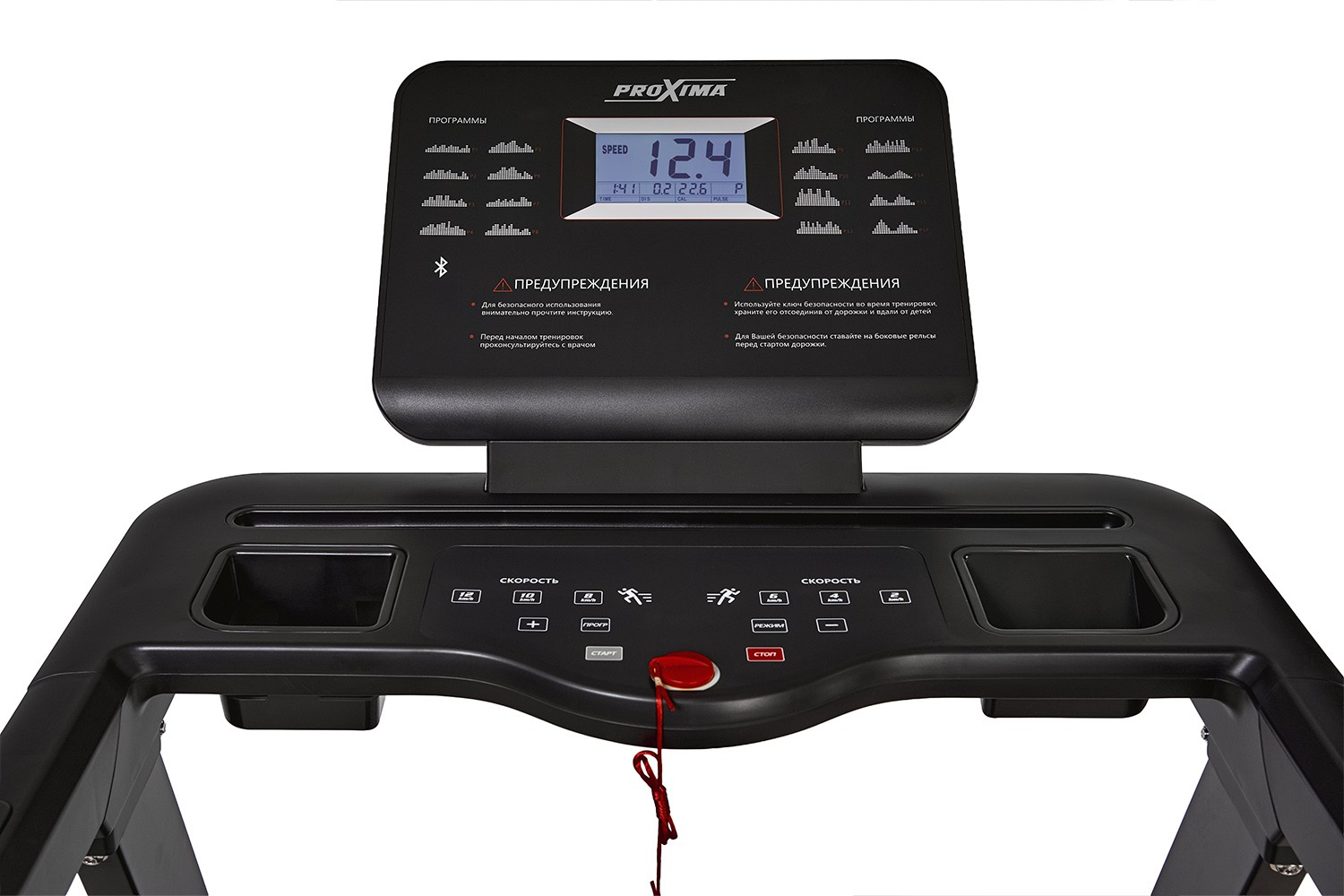 Во время тренировки все ключевые показатели - скорость, время, дистанция, калории, частоту пульса, текущий профиль выводятся на информативный 5 - дюймовый LCD дисплей.