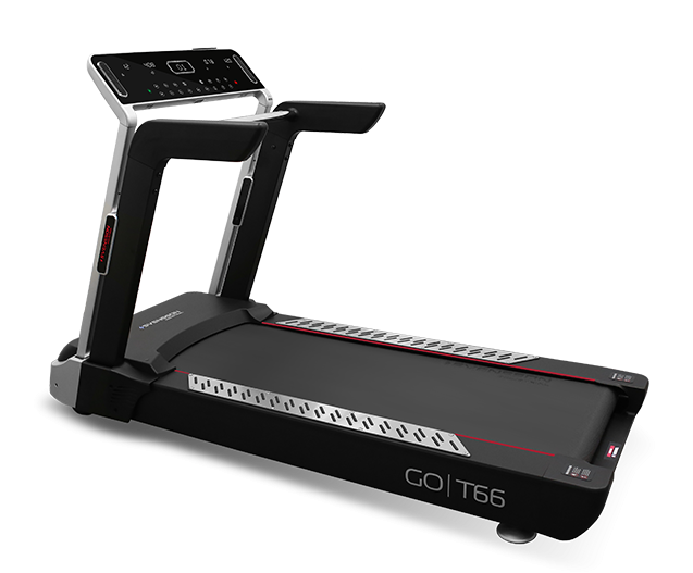 Особое внимание на GO T66 уделено консоли. В отличие от большинства других беговых дорожек, здесь используется небольшая тонкая прямоугольная консоль, покрытая черным глянцем. Тренировочный компьютер представлен профессиональным LED дисплеем и 4 дополнительными буквенно-цифровыми LCD экранами. Абсолютно все клавиши управления сенсорные и подсвечены внутренними светодиодами. Когда дорожка выключена, ее консоль представляет собой стильный черный экран. Встроенные программы ориентированы на любые возможные задачи - снижение веса, тренировку выносливости или скоростных качеств. Помимо этого, есть 3 пульсозависимые и 3 пользовательские программы. Для точного определения пульса и просто комфортной тренировки в компьютер встроен высокоточный беспроводной телеметрический приемник (для считывания частоты сердечного ритма рекомендован нагрудный ремень-передатчик Polar T34). GO T66 синхронизируется с мобильным приложением FitShow™. Большой выбор уникальных программ, анализ статистических данных, функция регулировки скорости и угла наклона на мобильном телефоне помогут пользователям повысить эффективность занятий спортом.