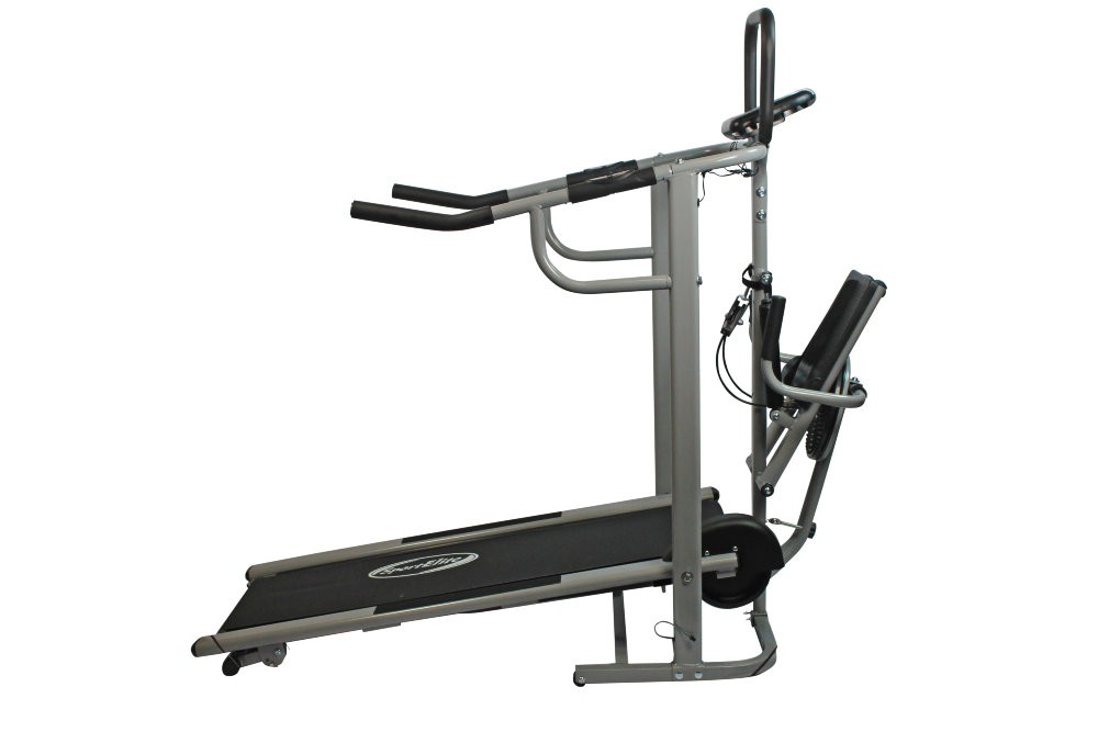 Многофункциональный тренажер включает в себя 4 комплекса: Беговая дорожка. «Твистер» – диск здоровья. Степпер Упоры для отжиманий Беговая дорожка SE-1611 представляет собой домашний тренажер, предназначенный для поддержания физической формы и общей тренировки организма. Всем известно, что бег положительно влияет на уровень физической подготовки, улучшает выносливость, делает организм более тренированным.Ежедневные занятия на беговой дорожке позволят быстро привести фигуру в порядок, планомерно развивать и укреплять дыхательную систему, тренировать сердце. При этом уровень сложности и интенсивность тренировки вы можете задавать самостоятельно. Магнитная система изменения уровня нагрузки (8 уровней нагрузки) и маховик массой 3,5 килограмма обеспечивает плавный ход, а также бесшумную работу. Беговая дорожка SE-1611 отлично подойдет для тех, кто хочет иметь красивую фигуру и тренированное тело. Легко складывается и подходит для домашнего использования. Диск "Грация": Диск Грация поможет добиться красивой фигуры, здорового тела, стройной талии быстро, надежно и в любое время. Специальный рельеф обеспечивает аккупунктурный массаж стоп во время занятий.Легкий, компактный, не требует дополнительного места и времени, можно использовать на работе во время перерыва, дома перед телевизором или на кухне. Степпер : отличный тренажер, предназначенный для использования в домашних условиях. Позволит очень эффективно заниматься дома, полностью контролируя процесс тренировки. Имитация ходьбы по лестнице, которая является основной функцией, позволяет поддерживать в тонусе все основные группы мышц. Основное преимущество министеппера заключается в динамичности и одновременной продуктивности каждой тренировки. Динамичные движения не позволят заскучать, однако польза от тренировки будет не меньше, чем после похода на тренировку в фитнес-зал. Широкие педали с нескользящей поверхностью сделают тренировку максимально комфортной и удобной, пользователя не будут отвлекать неудобства и он сможет полностью сконцентрироваться на тренировке. Упоры для отжиманий: систематические занятия с использованием упоров для отжимания повышают выносливость организма, помогают избавиться от лишнего веса, улучшают тонус мышц рук, груди и плечевого пояса, сделают Ваше тело стройным и красивым. Основные характеристики Использование Домашнее Тип беговой дорожки Механическая Тип нагрузки нет Габариты бегового полотна (см) 33 х 119 см Макс. вес пользователя 100 кг Скорость движения Без ограничения Изменение угола наклона полотна Есть Регулировка угла наклона Ручная регулировка Складывание Есть Монитор и программные характеристики Компьютер: ЖК дисплей Показания компьютера: Время, скорость, потраченные калории, дистанция, пульс, скан. Система измерения пульса: Сенсорные датчики пульса расположены на рукоятках тренажера Количество программ тренировки: Нет Спецификации программ: Нет Специальные программные возможности: Нет Дополнительные характеристики Транспортировочные ролики Да Рама Стальная Подставка для аксессуаров Нет Питание ААА Габариты и вес тренажера Вес тренажера: 39 кг Вес в упаковке: 41 кг Вес маховика 3,5кг Габариты в сложенном виде: 142х66х100 см Габариты в собранном виде: 142х66х182 см Габариты в упаковке : 130,5 х 58 х 20 см