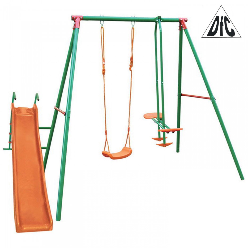 Включает качели, двухместные качели и горку Регулируемые веревки для качелей Горка спускной желоб и сидение качелей - пластик подходит для детей: 3-10 лет Материал сидений качелей пластмасса, устойчивая к воздействию солнечных лучей. Металл - сталь, покрытие -порошковая краска Верхняя труба 50.8 x 2мм Опорная труба: 45x1.5 мм Боковая трубка: 25.4x1.00мм Поручни и лестница труба 25.4x1.0 мм Размер спускного желоба: : 177 - x 36.5 x 24.5 см (Д х Ш х В) размеры в собранном виде: 258x192x200см (Д х Ш х В) размеры коробки:: 178 x 37 x 24 см Вес кг: 35/38 Производитель:DFC Произведено в Малайзии