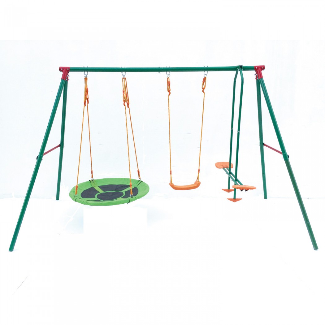 Главная Спортивный интернет магазин Детские спортивные комплексы для дома и улицы Детские уличные городки и качели DFC Детские качели DFC MSG-01 с тремя качелями