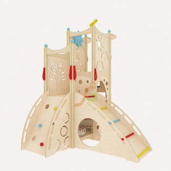 Современных детишек трудно чем-то удивить, но мы не стоим на месте - разрабатываем новые идеи. На этот раз хотим порадовать вас уникальными домиками, которые устанавливаются в квартире, на террасе, в ресторане, гостинице или детском саду. Модель под названием IgraGrad 4 оборудована игровыми элементами, без которых дети не могут обойтись. Среди них есть необычные новинки: лесенка-скалодром; шест для спуска с домика. Особое внимание было уделено дизайну конструкции. Благодаря продуманному проектированию домик занимает минимум места и отличается функциональностью. Прямоугольные выемки могут выступать в качестве ступенек, через круглые отверстия малыши могут выбираться из домика, представляя, что преодолевают тяжёлый путь лабиринта. Модель наделена нижним этажом, где можно читать книжки, рассматривать картинки. А также присутствует второй этаж, на котором можно устроить торжественное выступление для всей семьи, рассказать стихотворение на праздник или спеть песенку. Преимущества конструкции: Устанавливается в любом уголке комнаты и даже по центру; Не выделяет токсины в воздух, потому что изготовлен из берёзовой фанеры, которая обработана масляной пропиткой; Наделена красочным интересным дизайном; Имеет выемки и ручки для удобной эксплуатации; Влияет на физическое, социальное развитие детишек; Собирается по принципу конструктора благодаря щитовым элементам. Интересный игровой комплекс IgraGrad 4 обеспечивает пользу для детского досуга и является украшением интерьера. Дарите своим детишкам полезные подарки, чтобы они были не только счастливыми, но и здоровыми. Габариты: Длина площадки: 262 см Ширина площадки: 196 см Высота площадки: 247 см