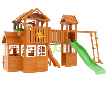Детская площадка для дачи "Клубный домик Макси Luxe" включает: - Закрытый двухуровневый игровой домик с дверью и деревянной крышей; - увеличенный первый этаж с доп. двускатной крышей, - дополнительный двухуровневый домик с деревянной крышей - балкон - деревянное кашпо; - волновая горка 3 м; - рукоход - подвесной мост - деревянная лестница с перилами; - скалодром - канат; - качельный модуль; - качели-гнездо 100 см; - доска для игры в “Крестики-нолики”; - пластиковые окошки; - игровой столик; - фонарики на солнечных батареях; - декоративное солнышко; - комплект фурнитуры; - руководство по сборке; Габариты детской площадки составляют: - длина, м: 6,64 - ширина, м: 6,5 - высота, м: 3,4 - высота платформы, м: 1,5 - платформа, м: 1,25 x 2,40 Стоимость сборки детской площадки: 17 000 руб. Размеры упаковки: - упаковка: 200*200*3000, 6 шт., 273,60 кг. - упаковка: 180*180*2800, 1 шт., 34,47 кг. - упаковка: 45*700*1500, 2 шт., 21,60 кг. - упаковка: 45*1300*1500, 1 шт., 14,80 кг. - упаковка: 45*700*2800, 6 шт., 117,60 кг. - упаковка: 45*1300*2800, 4 шт., 139,20 кг. - упаковка: 350*500*500, 1 шт., 15,00 кг. - горка: 300*500*2900, 1 шт., 12,00 кг. (транспортировка только в жёсткой упаковке!) Общий вес: 628,27 кг. Общий объём: 2,700 м3