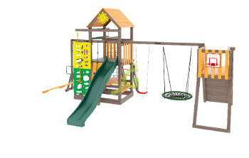 Комплектация детской площадки "IgraGrad Спорт 5": - конструкция башни, стойки из клееного бруса 90х90; - дополнительный модуль для лазания со скалодромом; - конструкция скалодром с камнями; - волновая горка 3 м; - качельный модуль; - качели одиночные 1 шт.; - качели Гнездо 100 см - столик с лавочками; - рукоход; - турник; - силовая скамья; - груша; - баскетбольное кольцо; - деревянная лестница с перилами; - веревочная лестница; - канат с тремя узлами; - веревочная сетка для лазания; - комплект фурнитуры; - руководство по сборке; Кронштейны типа "Якорь" в комплект не входят. Приобретаются отдельно по желанию клиента. По желанию клиента игровая площадка может быть укомплектована дополнительными элементами. Можно заменить обычные качели на качели-гнездо, которые очень удобны в использовании. Наши специалисты обсудят с вами все детали заказа и быстро оформят заявку. Габариты игрового комплекса для детей составляют: - длина, м: 7,35; - высота, м: 3,47; - ширина, м: 5,70; Размеры упаковки деревянной детской площадки: - упаковка: 180*180*2800, 5 шт., 172,37 кг. - упаковка: 250*300*1460, 1 шт., 41,61 кг. - упаковка: 200*200*3000, 1 шт., 45,60 кг. - упаковка: 220*280*1200, 3 шт., 84,27 кг. - упаковка: 45*135*1570, 1 шт., 28,09 кг. - упаковка: 25*700*1000, 1 шт., 6,65 кг. - упаковка: 1050*1050*80, 1 шт., 7,00 кг. - упаковка: 350*500*500, 2 шт., 20,00 кг. - горка: 300*500*2900, 1 шт., 12,00 кг. (транспортировка только в жёсткой упаковке!) Общий вес: 417,59 кг. Общий объём: 1,694 м3