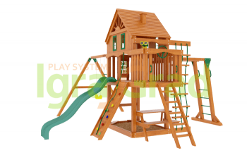 Площадка из дерева с двумя окошками «Навигатор» (Домик) полезна для детей: - Улучшает выносливость, развивает мышцы. - Помогает детям адаптироваться в обществе. - Помогает преодолевать поставленные цели. - Конструкция находится рядом с домом за огороженной территорией. Купить детскую престижную площадку, изготовленную из качественных материалов, укомплектованной надёжными элементами от европейских и американских производителей можно в любое время на нашем сайте igragrad.ru. Усиленная конструкция прослужит Вашим деткам много лет. В состав игрового комплекса для детей "Навигатор" (Домик) входит: - двухуровневый домик с красивыми пластиковыми окошками; - волновая горка с высоты 1,5 м; - веревочная лестница; - деревянная лестница; - рукоход; - конструкция скалодром с камнями; - качельный модуль; - гибкие качели на цепях в резиновой оболочке (2 шт.); - трапеция с кольцами на цепях в резиновой оболочке; - комплект пластиковых ручек; - доска для игры в “Крестики-нолики”; - лавочка-столик; - песочница; - бинокль/телескоп; - руль/штурвал; - крепежный элемент "Якорь" (2 шт.); - комплект фурнитуры; - руководство по сборке. Габариты игрового комплекса для детей составляют: - длина, м: 6,3; - высота, м: 3,7; - ширина, м: 5,65; - высота платформы, м: 1,5; - платформа, м: 1,35 х 2,35 Размеры упаковки деревянной детской площадки: - упаковка: 200*200*3000, 8 шт., 364,80 кг. - упаковка: 200*200*1200, 1 шт., 18,24 кг. - упаковка: 350*500*500, 1 шт., 15,00 кг. - горка: 300*500*2900, 1 шт., 22,00 кг. (транспортировка только в жёсткой упаковке!) Общий вес: 420,04 кг. Общий объём: 1,531 м3
