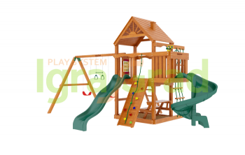 В состав игрового комплекса для детей «Шато Sun» (Домик) входит: - двухуровневый домик с красивыми пластиковыми окошками; - волновая горка; - горка-спираль с высоты 1,5 м; - веревочная лестница; - деревянная лестница; - конструкция скалодром с камнями; - качельный модуль; - гибкие качели на цепях в резиновой оболочке (2шт.); - трапеция с кольцами на цепях в резиновой оболочке; - комплект пластиковых ручек; - доска для игры в “Крестики-нолики”; - лавочка-столик; - песочница; - бинокль/телескоп; - руль/штурвал; - крепежный элемент ""Якорь"" (2 шт.); - комплект фурнитуры; - руководство по сборке. Габариты игрового комплекса для детей составляют: - длина, м: 6,7; - высота, м: 3,7; - ширина, м: 4,55; - высота платформы, м: 1,5; - платформа, м: 1,35 х 2,35; Размеры упаковки деревянной детской площадки: - упаковка: 200*200*3000, 6 шт., 273,60 кг. - упаковка: 180*180*2800, 2 шт., 68,95 кг. - упаковка: 350*500*500, 1 шт., 15,00 кг. - винтовая горка: 750*600*1200, 1 шт., 38,00 кг. - горка: 300*500*2900, 1 шт., 22,00 кг. (транспортировка только в жёсткой упаковке!) Общий вес: 417,55 кг. Общий объём: 1,964 м3
