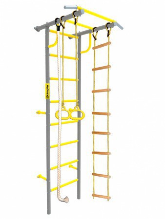 Детский спортивный комплекс ДСК Kampfer Strong Kid Wall Top Артикул: Strong Kid Wall Top Детский спортивный комплекс ДСК Kampfer Strong Kid Wall Top это новая прочная конструкция всем известной шведской стенки - которая позволяет выдерживать пользователя весом до 100 кг. Одинаково хорошо подходит как для самых маленьких детей от 3 лет, так и для подростков, и их родителей! Компактная конструкция занимая не много места позволяет выполнить множество упражнений, на развитие мышц спины, пресса, рук и ног. Дети с удовольствием играют на этом детском спортивном уголке часами, при этом укрепляются мышцы развивается ловкость и физическое здоровье малышей. А также Kampfer Strong Kid Top поможет и взрослым улучшить свою спортивную форму не выходя из дома! Более прочные стойки диаметром трубы D=42 мм, толщиной 1,5 мм, выдерживают заводские испытания 100 кг. Модернизированный узел соединения стоек предотвращает их изгиб при повышенных нагрузках. Способ установки пристенный - крепится к стене. Универсальный и надежный вариант крепления. Можно использовать для помещений с подвесными и натяжными потолками. Не подходит при гипсокартонных стенах. Новая конструкция турника! — Дополнительная перекладина! — Более широкий захват размером 87 см. — Удлиненный выступ турника размером 50 см. — Больше свободного места для размещения навесного оборудования. — Теперь намного удобнее выполнять упражнения на подтягивания, и раскачивания! — Новая цветовая гамма! — Солнечная дымка. Детский спортивный комплекс Kampfer Strong Kid Wall Top это металлическая шведская стенка с массажными перекладинами. В отличие от металлических ступенек, ступеньки покрытые ПВХ более мягкие и удобные для захвата. А также, браться за такие ступеньки приятно и совсем не холодно, что лучше всего подходит для детей. Выступающие элементы обеспечивают дополнительную безопасность детей во время занятий, защищая руки от скольжения. А также новая конструкция ступеней массажирует руки и ноги ребенка, улучшая кровообращение, стимулирует и укрепляет мышцы во время занятий. Массаж ступней очень полезен в раннем возрасте так как, является профилактикой плоскостопия. Крепление: к стене. Можно использовать для помещений с подвесными и натяжными потолками. Не подходит при хрупких и гипсокартонных стенах, для них лучше подойдут модели с креплением враспор. Комплектация: — турник — канат — кольца гимнастические — веревочная лестница Для того, чтобы уберечь Ваших детей от ушибов при падениях и прыжках рекомендуем приобрести гимнастический мат. Также обратите внимание на дополнительные аксессуары, такие как брусья, баскетбольное кольцо, качели или наклонная доска, которые превратят Ваш ДСК в спортивный зал для всей семьи. Комплекс представляет собой сборно-разборную металлическую конструкцию. — Крепление: к стене. — Не регулируемая высота стоек с турником: 2,19 м — Размеры (ДxШxВ): 70,5 x 87 x 219 см — Центральная ширина шведской лестницы: 49,75 см (расстояние от центра одной стойки, до центра другой стойки) — Ширина шведской лестницы: 54 см (расстояние от внешнего края одной стойки, до внешнего края другой стойки) — Общая ширина шведской лестницы: 55 см (с учетом выступов крепежных деталей) — Расстояние между стойками-длина ступени: 45,5 см (расстояние от внутреннего края одной стойки, до внутреннего края другой стойки) — Расстояние между ступеньками: 26 см 