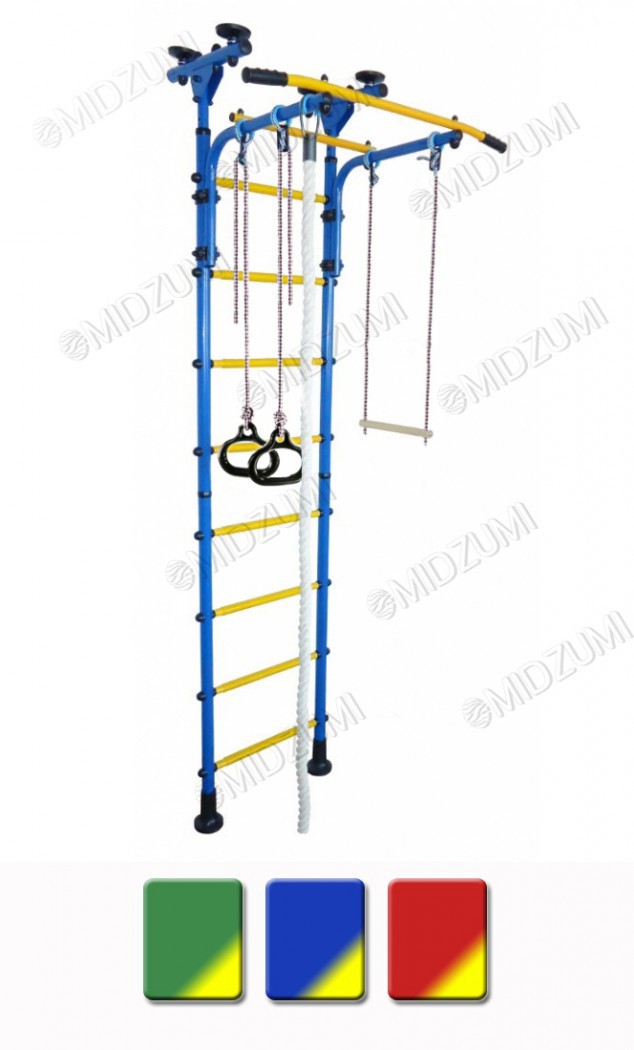 Торговый Дом Midzumi представляет новинку Детский спортивный комплекс Midzumi Hoshi. Этот спортивный комплекс показывает разнообразие модельного ряда продукции Midzumi. Прочная металлическая конструкция позволяет выдерживать до 100 кг. Крепление враспор прекрасно подойдет тем, кто не хочет портить обои и сверлить стены. Крепление враспор между полом и потолком надежно ни чуть не меньше крепления к стене, к тому же такой комплекс при необходимости можно легко перенести на другое место. При выборе комплекса обратите внимание на материал Вашего потолка. Если он выполнен из хрупких материалов, таких как гипсокартон (навесные потолки) и вагонка, то для Вас лучше подойдут пристенные модели. Металлическая шведская стенка имеет турник c большим выносом от самой стенки. Благодаря такому дизайну появляется возможность добавить в комплекс навесное оборудование такое как трапеция, канат и гимнастические кольца. Дети очень увлекаются игрой на шведской стенке, особенно интересно когда есть возможность перепрыгивать с одного снаряда на другой. В ДСК Midzumi Hoshi есть все необходимое для выполнения различных общеразвивающих и укрепляющих упражнений в домашних условиях. Hoshi можно использовать как для развлечений, так и для занятий спортом. Торговый Дом Midzumi включает в свои комплексы все Ваши интересы. Среди богатого разнообразия детских спортивных комплексов, каждый найдет то, что интересно именно ему.