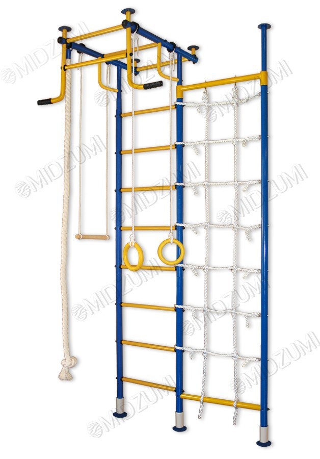 Детский спортивный комплекс Midzumi Kawa показывает разнообразие модельного ряда продукции Midzumi. Прочная металлическая конструкция позволяет выдерживать до 100 кг. Крепление враспор прекрасно подойдет тем, кто не хочет портить обои и сверлить стены. Крепление враспор между полом и потолком надежно ни чуть не меньше крепления к стене, к тому же такой комплекс при необходимости можно легко перенести на другое место. При выборе комплекса обратите внимание на материал Вашего потолка. Если он выполнен из хрупких материалов, таких как гипсокартон (навесные потолки) и вагонка, то для Вас лучше подойдут пристенные модели. Металлическая шведская стенка имеет турник с большим выносом от самой стенки. Благодаря такому дизайну появляется возможность добавить в комплекс навесное оборудование такое как канат, трапеция и кольца. Дополнительно к шведской стенке крепится канатный лаз. Его можно установить справа или слева от шведской стенки. Дети очень увлекаются игрой на шведской стенке, особенно интересно когда есть возможность перепрыгивать с одного снаряда на другой. В ДСК Midzumi Kawa есть все необходимое для выполнения различных общеразвивающих и укрепляющих упражнений в домашних условиях. Kawa можно использовать как для развлечений, так и для занятий спортом. Торговый Дом Midzumi включает в свои комплексы все Ваши интересы. Среди богатого разнообразия детских спортивных комплексов, каждый найдет то, что интересно именно ему.