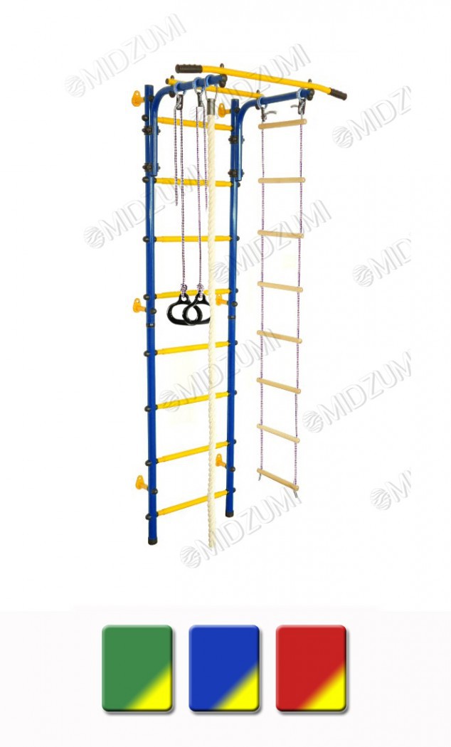 Торговый Дом Midzumi представляет новинку Детский спортивный комплекс Midzumi Niji Kabe . Этот спортивный комплекс показывает разнообразие модельного ряда продукции Midzumi. Прочная металлическая конструкция позволяет выдерживать до 100 кг. Крепление к стене отличный способ установить комплекс в квартирах с хрупкими потолками. Крепление к стене надежный способ установки комплекса. При выборе комплекса обратите внимание на материал Ваших стен. Если они выполнены из хрупких материалов, таких как гипсокартон и вагонка, то для Вас лучше подойдут распорные модели. Металлическая шведская стенка имеет турник c большим выносом от самой стенки. Благодаря такому дизайну появляется возможность добавить в комплекс навесное оборудование такое как веревочная лестница, канат и гимнастические кольца. Дети очень увлекаются игрой на шведской стенке, особенно интересно когда есть возможность перепрыгивать с одного снаряда на другой. В ДСК Midzumi Niji Kabe есть все необходимое для выполнения различных общеразвивающих и укрепляющих упражнений в домашних условиях. Niji Kabe можно использовать как для развлечений, так и для занятий спортом. Торговый Дом Midzumi включает в свои комплексы все Ваши интересы. Среди богатого разнообразия детских спортивных комплексов, каждый найдет то, что интересно именно ему.