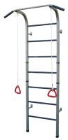 Универсальный спортивный комплекс широкого применения. Высокая прочность несущих конструктивных элементов обеспечивает безопасную совокупную нагрузку до 120 кг на изделие. Качественная окраска несущих элементов в сочетании с металлическими перекладинами покрытых ребристым полимером гарантируют долговечную эксплуатацию лестницы в различных условиях. Конструктивно лестница оснащена турником с жесткой верхней фиксацией и двумя веревочными кольцами-ручками для выполнения упражнений на растяжения и иные гимнастические упражнения.