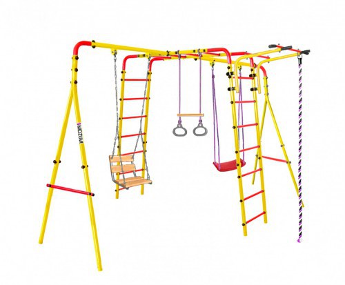 личный детский спортивный комплекс Midzumi Chikara Universal Артикул: Chikara Universal Торговый Дом Midzumi представляет новинку Уличный Детский спортивный комплекс Midzumi Chikara Universal в новом цветовом решении - солнечный день. Этот спортивный комплекс показывает разнообразие модельного ряда продукции Midzumi. Прочная металлическая конструкция позволяет выдерживать до 100 кг. Крепление Комплекса осуществляется с помощью бетонирования. Midzumi Chikara Universal состоит из каркаса двух металлических лестниц с рукоходом, передвижного турника, двух разных навесных качелей, каната и колец с перекладиной. Качественные материалы изготовления надолго сохраняют яркость цвета и рассчитаны на любые погодные условия, устойчивы к попаданию прямых солнечных лучей, морозу, дождю и перепадам температур, прослужат долго даже при самом интенсивном использовании. Midzumi Chikara Universal совмещет в себе качели для разного возраста детей - качели со спинкой и подлокотниками для самых маленьких, а качели без спинки подойдут для детей в возрасте от 5 лет и старше. Удобные и надежные подвесные деревянные качели Midzumi. Вместительный размер широкого сидения качелей глубина 32 см, ширина 40 см снаружи и 34 см внутри. Подвесные качели Midzumi состоят из подвесного на цепях металлического каркаса качелей с деревянной спинкой и сидением. Это классический вариант металлических качелей с деревянными спинкой и сидением, а также приятная раскраска и интересный дизайн. Широкое деревянное сидение качелей сможет уместить как ребенка, так и взрослого, имеет под собой прочный металлического каркас и для подвеса снабжена металлической цепью, благодаря чему качели обладают повышенной износостойкостью и позволяют выдерживать максимальную нагрузку до 100 кг. Использование таких качелей подарит отличное настроение и восторг пользователям любого возраста! Пластиковые качели это облегченный вариант классических качелей наиболее безопасный для детей, а также яркая раскраска и интересный дизайн качелей обязательно понравятся детям. Широкое пластиковое сидение качелей изготовлено из современного прочного материала и снабжена водостойким полиамидным шнуром, благодаря чему качели обладают повышенной износостойкостью и позволяют выдерживать максимальную нагрузку до 100 кг. Использование таких качелей подарит отличное настроение и восторг пользователям любого возраста! Комплектация: — основа - каркас из металлических лестниц с рукоходом — передвижной турник — цепные качели со спинкой — пластиковые качели без спинки — канат — кольца с перекладиной Характеристики — В новом цветовом решении - солнечный день — Для детей от 4 лет и старше — Общие размеры комплекса (ДхШхВ): 285 х 365 х 210 см — Общая длина (расстояние с выступом турника): 285 см — Длина между лестницами (без выступа турника): 235-245 см — Общая ширина комплекса: 365 см — Высота комплекса: 210 см — Материал стоек и перекладин: металл — Материал шнура качелей без спинки, колец с перекладиной: полиамид — Материал подвесных цепных качелей: металическое основание, деревянная спинка и сидение — Размер сиденья цепных качелей (ДхШ): 32 х 40 см — Размер спинки цепных качелей (ШхВ): 40 х 33 см — Материал пластиковых качелей без спинки: пластик — Размер качелей без спинки: (ДхШхВ): 17 x 42 x 150 см — Размер сиденья без спинки: 42 х 17 х 10 см — Стойки - труба диаметр 42 мм — Максимальная доп