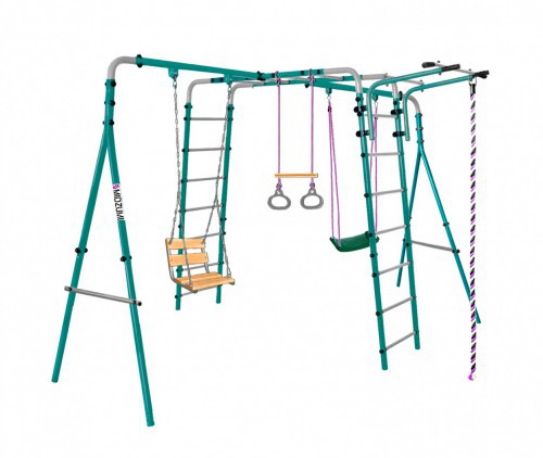 Уличный детский спортивный комплекс Midzumi Tenshi Universal Артикул: Tenshi Universal Торговый Дом Midzumi представляет новинку Уличный Детский спортивный комплекс Midzumi Tenshi Universal в новом цветовом решении - морской бриз. Этот спортивный комплекс показывает разнообразие модельного ряда продукции Midzumi. Прочная металлическая конструкция позволяет выдерживать до 100 кг. Крепление Комплекса осуществляется с помощью бетонирования. Midzumi Tenshi Universal состоит из каркаса двух металлических лестниц с рукоходом, передвижного турника, пластиковых качелей без спинки, цепных качелей со спинкой, каната и колец с перекладиной. Midzumi Tenshi Universal совмещает в себе качели для разного возраста детей - качели со спинкой и подлокотниками для самых маленьких, а качели без спинки подойдут для детей в возрасте от 5 лет и старше. Пластиковые качели без спинки это облегченный вариант классических качелей наиболее безопасный для детей, а также яркая раскраска и интересный дизайн качелей обязательно понравятся малышу. Широкое пластиковое сидение качелей 42 см изготовлено из современного прочного материала и снабжена водостойким полиамидным шнуром, благодаря чему качели обладают повышенной износостойкостью и позволяют выдерживать максимальную нагрузку до 100 кг. Использование таких качелей подарит отличное настроение и восторг пользователям любого возраста! Удобные и надежные подвесные цепные качели со спинкой Midzumi. Вместительный размер широкого сидения качелей глубина 32 см, ширина 40 см снаружи и 34 см внутри. Подвесные качели Midzumi состоят из подвесного на цепях металлического каркаса качелей с деревянной спинкой и сидением. Это классический вариант металлических качелей с деревянными спинкой и сидением, а также приятная раскраска и интересный дизайн. Широкое деревянное сидение качелей сможет уместить как ребенка, так и взрослого, имеет под собой прочный металлического каркас и для подвеса снабжена металлической цепью, благодаря чему качели обладают повышенной износостойкостью и позволяют выдерживать максимальную нагрузку до 100 кг. Использование таких качелей подарит отличное настроение и восторг пользователям любого возраста! Качественные материалы изготовления надолго сохраняют яркость цвета и рассчитаны на любые погодные условия, устойчивы к попаданию прямых солнечных лучей, морозу, дождю и перепадам температур, прослужат долго даже при самом интенсивном использовании. Комплектация: — основа - каркас из металлических лестниц с рукоходом — передвижной турник — навесные цепные качели — пластиковые качели без спинки — канат — кольца с перекладиной Характеристики — В новом цветовом решении - морской бриз — Для детей от 4 лет и старше — Общие размеры комплекса (ДхШхВ): 285 х 365 х 210 см — Общая длина (расстояние с выступом турника): 285 см — Длина между лестницами (без выступа турника): 235-245 см — Общая ширина комплекса: 365 см — Высота комплекса: 210 см — Материал стоек и перекладин: металл — Материал шнура качелей без спинки, колец с перекладиной: полиамид — Материал подвесных качелей без спинки: пластик — Размер качелей без спинки: (ДхШхВ): 17 x 42 x 150 см — Размер сиденья без спинки: 42 х 17 х 10 см — Материал цепных качелей: металическое основание, деревянная спинка и сидение — Габаритные размеры цепных качелей (ДхШхВ): 33 x 40 x 150 см — Размер сиденья цепных качелей (ДхШ): 32 х 40 см — Ра