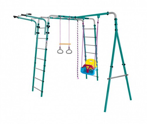Уличный детский спортивный комплекс Midzumi Yokina Ko Small Артикул: Yokina Ko Small Торговый Дом Midzumi представляет новинку Уличный Детский спортивный комплекс Midzumi Yokina Ko Small. Этот спортивный комплекс показывает разнообразие модельного ряда продукции Midzumi. Прочная металлическая конструкция позволяет выдерживать до 100 кг. Крепление комплекса осуществляется с помощью бетонирования. Midzumi Yokina Ko Small состоит из каркаса двух металлических лестниц с рукоходом, передвижного турника, навесных пластиковых качелей, каната и колец с перекладиной. Пластиковые качели 3в1 это облегченный вариант классических качелей наиболее безопасный для детей, а также яркая раскраска и интересный дизайн качелей 3в1 обязательно понравятся малышу. Качели Midzumi выполнены в форме кресла с высокой съемной спинкой и дополнительным защитным ограничительным поручнем. В дальнейшем, когда ребенок подрастет можно убрать ограничительные поручень и спинку, за счет чего размер сидения увеличится и сможет уместить как дошкольника, так и подростка. Широкое пластиковое сидение качелей изготовлено из современного прочного материала и снабжена водостойким полиамидным шнуром, благодаря чему качели обладают повышенной износостойкостью и позволяют выдерживать максимальную нагрузку до 100 кг. Использование таких качелей подарит отличное настроение и восторг пользователям любого возраста! Три различных варианта сборки качелей для разного возраста: — №1 со спинкой и ограничителем: от 1 до 3-х лет — №2 со спинкой и без ограничителя: от 3 до 5 лет — №3 без спинки и без ограничителя: от 5 лет и старше Комплектация: — основа - каркас из металлических лестниц с рукоходом — передвижной турник — подвесные пластиковые качели 3в1 — канат — кольца с перекладиной Характеристики: — В новом цветовом решении - морской бриз — Для детей от 1 года и старше — Габариты (ДхШхВ): 285 х 210 х 210 см — Материал стоек : металл — Материал подвесных качелей: пластик — Комплектация: каркас из металлических лестниц с рукоходом, турник, качели 3в1, канат, кольца с перекладиной. — Качели подвешены на полиамидном шнуре — Размер качелей 3в1 (ДхШхВ): 35,5 x 42,5 x 150 см — Размер сиденья качелей со спинкой/без спинки: 32 х 22/30 см — Высота спинки качелей: 38,5 см — Материал сиденья: пластик — Материал шнура: полиамид — Стойки - труба диаметр 42 мм — Материал перекладин: металл — Максимальная допустимая нагрузка: 100 кг — Общий вес нетто: 56 кг — Гарантия: 1 год Упаковка 3 коробки: — 1 место: 122 х 44 х 14 см 30,2 кг, — 2 место: 122 х 44 х 14 см 25,8 кг — 3 место: 43 x 39 x 33 см 1,5 кг — Общий вес в упаковке: 57,5 кг