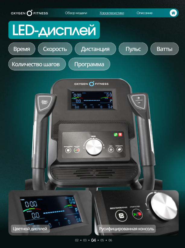 Тренажёр построен на высокопрочной раме с антикоррозийной обработкой и двухслойной покраской, что обеспечивает устойчивость, надёжность и длительный срок службы. Ключевые параметры движения: • Длина шага530 мм— близкая к естественной беговой траектории, подходит пользователям разного роста. • Минимальное расстояние между педалями —62 мм, что снижает нагрузку на коленные и тазобедренные суставы. • Трёхкомпонентный шатун — повышенная прочность и стабильность педального узла. • Инерционный вес маховика8 кгобеспечивает плавный и равномерный ход без рывков. Увеличенные антискользящие педали гарантируют надёжную фиксацию стопы даже при интенсивной работе, а двухпозиционные нескользящие рукоятки позволяют задействовать мышцы верхней части тела. OXYGEN FITNESS MULBERRY оснащён электромагнитной системой нагружения с 16 уровнями сопротивления, регулируемыми электронно. Такая система обеспечивает точную настройку интенсивности и плавное изменение нагрузки во время тренировки. Цветная LED-консоль отображает расширенный набор параметров: • время, скорость, дистанцию, • калории, пульс, • программу, Ватты, • жироанализатор, • количество шагов. Программный пакет включает 22 режима тренировок: • быстрый старт и ручной режим, • 10 предустановленных программ, • 4 пульсозависимые программы, • 4 пользовательские программы, • режим работы по Ваттам, • жироанализатор. Для более точного контроля пульса предусмотрена возможность подключения Bluetooth-кардиодатчика (приобретается отдельно). Тренажёр поддерживает Bluetooth-подключение к популярным приложениям Kinomap™ и Zwift™ с интерактивным уровнем интеграции, что делает тренировки более вовлекающими и разнообразными. Интерфейс доступен на русском и английском языках. Для удобства пользователя предусмотрены: • подставка под планшет или смартфон, • подставка для бутылки, • удлинённый сетевой шнур4 м, • транспортировочные ролики и компенсаторы неровностей пола. OXYGEN FITNESS MULBERRY — сбалансированный эллиптический тренажёр для дома, сочетающий продуманную биомеханику, современные технологии и комфорт, необходимый для регулярных и эффективных кардиотренировок.