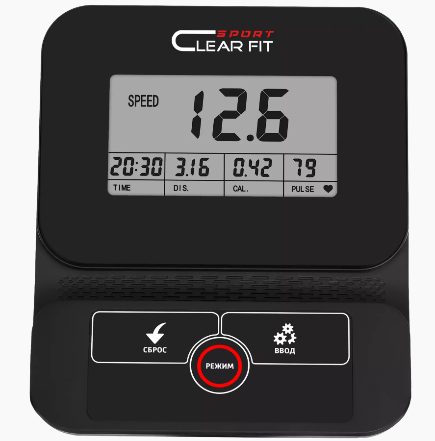 Компьютер с большим информативным LCD дисплеем прост в управлении, фиксирует все показания, отображает параметры тренировки: время, скорость, дистанцию, калории, пульс и RPM. Целевые тренировки включают в себя программы обратного отсчета на время, дистанцию или количество заданных калорий. Встроенные датчики пульса помогают контролировать самочувствие и поддерживать интенсивность на нужном уровне.