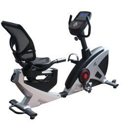 Велотренажер с удобной горизонтальной посадкой и бесшумной магнитной системой нагружения с электроприводом. Мягкое регулируемое анатомическое сиденье с вентилируемой спинкой для правильной осанки. Датчики измерения пульса расположены на рукоятках и позволяют контролировать частоту сердечного ритма во время движения. Как правило, встроенные на тренажерах датчики имеют погрушеность измерения. Поэтому для более точного определения ЧСС рекомендуем использовать нагрудный кардиопояс с часами - монитором. На тренажере установлены компенсаторы неровности пола, и дополнительно он имеет колеса для перемещения в комнате в случае необходимости. Встроенная звуковая система и возможность подключить планшет сделают тренировку более продолжительной.
