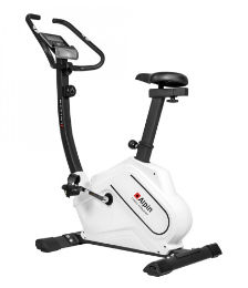 "ТЕХНИЧЕСКИЕ ХАРАКТЕРИСТИКИ Система нагружения Магнитная Масса маховика 9 кг сбалансированный Регулировка нагрузки Механическая 8 уровней Посадка Вертикальная Измерение пульса Датчики на поручнях Питание тренажера Автономное, батарейки Размеры в рабочем состоянии (дл х шир х выс), см 106x53x135 Вес, нетто/брутто кг 30/32.5 Максимальный вес пользователя 130 кг ТРЕНИРОВОЧНЫЙ КОМПЬЮТЕР Время тренировки есть Скорость есть Пройденная дистанция есть Уровень нагрузки есть Скорость вращения педалей есть Израсходованные калории есть Пульс есть Целевые тренировки (CountDown) есть Дополнительные функции BodyFat, RECOVERY (фитнес-тест) КОНСТРУКЦИЯ Регулировка руля круговая, в том числе положение ""трасса"" Руль комфортабельный многоопорный с оплеткой из пенорезины Педальный узел трехкомпонентный шатун на подшипниках Регулировка положения сиденья по вертикали и горизонтали Транспортировочные ролики есть Дополнительно Компенсаторы неровности пола Срок гарантии 1год Габариты упаковки: 84*30*63см вес 33кг"
