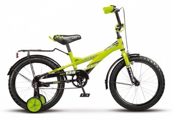 Детский велосипед на возраст от 4 до 7 лет с колёсами 16” и 18”. Стальная рама и жёсткая стальная вилка. Съёмные боковые колёса помогут в обучении катанию. Высокий руль, который регулируется как по высоте, так и по углу наклона, и эргономичное сиденье обеспечивают комфортную посадку. Задний ножной тормоз, передний ручной тормоз. Полная защита цепи, мягкие накладки на руле, звонок - всё это сделано для безопасного катания Вашего ребёнка. В комплект велосипеда также входят: стальные крылья, багажник.