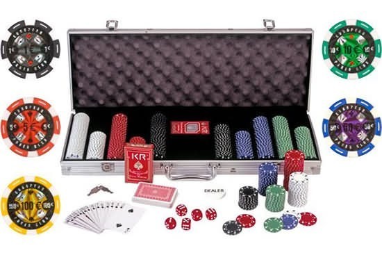 -Фишки для покера различного номинала, 5 цветов, по 100 шт. каждого (красный, зеленый, белый, черный, синий)