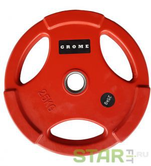 Диск GROME WP074 COLOR-25 кг Диск олимпийский 25 кг Диск обрезиненный красный трёххватовый, D 51 Внешний диаметр 42 см. Производитель: Китай.