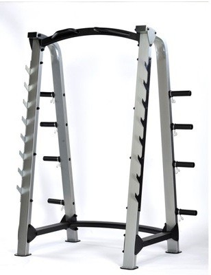 Конструкция из сверхпрочной стали, мультипозиционные опоры для фиксации штанги, место для хранения олимпийских весовых дисков. С помощью стойки можно выполнять упражнения: присед со штангой, подъем на носки со штангой, выпад со штангой, жим лежа (при использовании скамьи), подтягивание, жим штанги сидя.