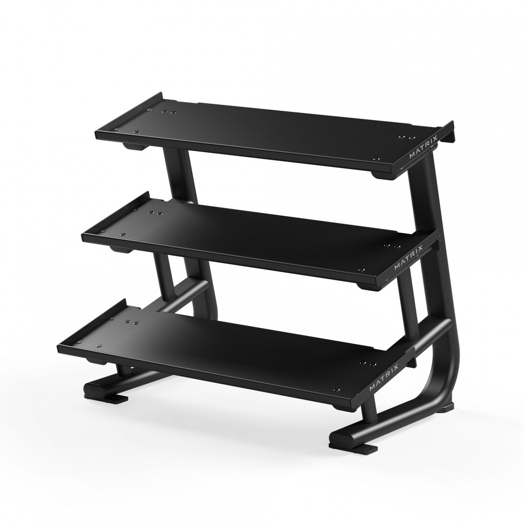 Короткая трехъярусная стойка для гантелей с плоскими полками Matrix MAGNUM MG-A544 s-dostavka