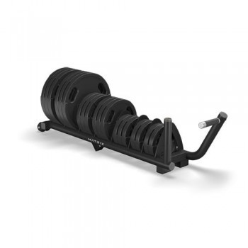 Размер тренажера в рабочем состоянии (Д*Ш*В) 183*33*46 см Вес нетто 34 кг НАДЕЖНОСТЬ И ДОЛГОВЕЧНОСТЬ КОНСТРУКЦИИ Высокопрочная износостойкая конструкция рамы обеспечивает долговечность оборудования и устойчивость даже при максимальной нагрузке. ОПИСАНИЕ МОДЕЛИ Возможно хранение максимум 314 кг/693 фунтов в различных конфигурациях весовых дисков. 1 встроенный штырь для хранения замков для штанги, ручка для транспортировки и 1 место хранения олимпийского грифа