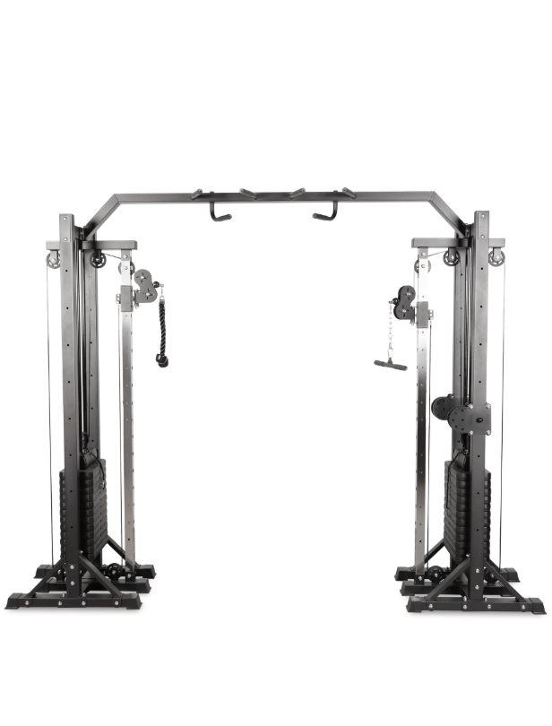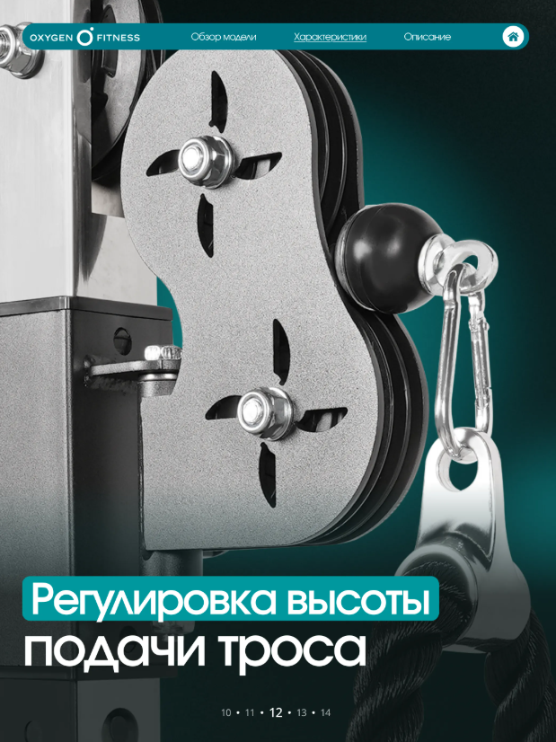 Конструкция рассчитана на интенсивное использование и высокие нагрузки: максимальный вес пользователя - 220 кг, максимальная нагрузка - 140 кг. Основа тренажёра — жёсткая рама прямоугольного профиля 70×50 мм с толщиной стенки 1,5 мм, обеспечивающая идеальную устойчивость и долговечность. В комплексе используются два грузоблока по 70 кг каждый (12+12 плит), выполненные из прочной композитной плиты. Вес одной плиты — 5,7 кг. Передача нагрузки осуществляется через стальные тросы диаметром 6 мм — надёжные, износостойкие и рассчитанные на долгий срок службы. Габариты в рабочем положении: • 130 × 295 × 230 см. Вес нетто — 244 кг. VESTON предлагает широкий диапазон тренировок за счёт продуманной конструкции и прикладных аксессуаров: • Кроссовер с регулируемыми рычагами (8 уровней по высоте) — упражнения на грудные, плечи, спину, руки и корпус. • Многофункциональный турник — подтягивания разными хватами, тренировка спины и мышц кора. • Брусья с регулировкой по высоте (15 уровней) — проработка трицепса, грудных и стабилизаторов. • Многофункциональная рычажная тяга — вариативная работа на широчайшие и мышцы спины. • Канат для трицепса — точечная изоляция рук. Дополнительно предусмотрены: • 2 пружинных замка, • накопители под диски Ø50 мм для удобной организации пространства.