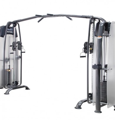 тренажер имеет четыре тяговых блока, два верхних и два нижних. при использовании рукояток для тяг и приспособлений различной конфигурации возможно выполнение большого числа упражнений.