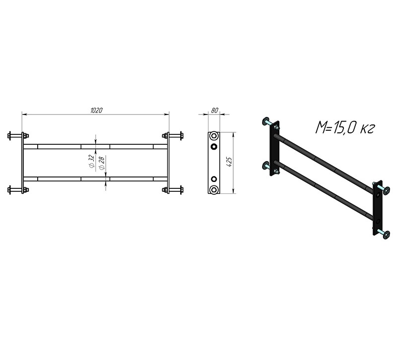 Тренажер - V-SPORT KF003.1 Турник 1.02м ( Д28 х 32мм)