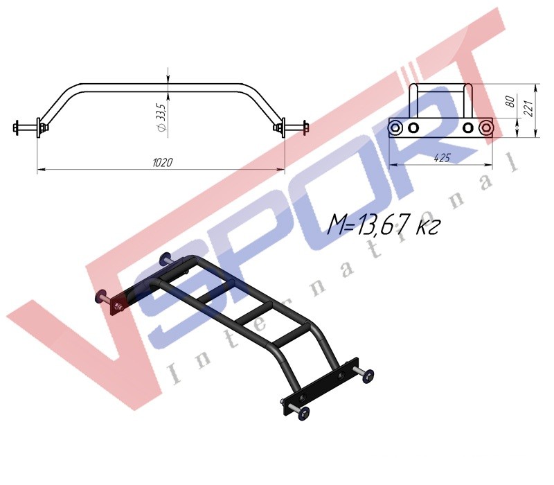 Главная Спортивный интернет магазин Силовые тренажеры для фитнес залов и клубов V-SPORT Профессиональные тренажеры КРОССФИТ, СИЛОВОЙ ЭКСТРИМ Тренажер - V-SPORT KF009 Турник трапеция 1,02 м