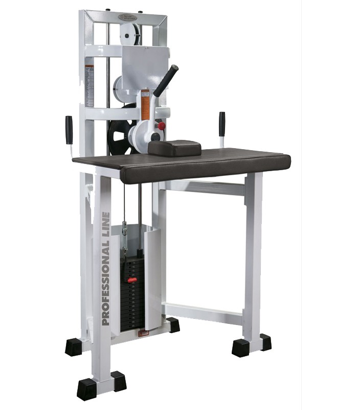Категория: профессиональный. Описание: профиль несущей конструкции 60х60х3 (мм). Тренажер окрашивается порошковой краской. Мягкие части изготовлены из многослойной фанеры (20 мм), в качестве наполнителя и обивки используется двухслойный пенополиуретан, устойчивый к усадке и высококачественная искусственная кожа. Грузоблочный стек тренажера состоит из 16 металлической плиты весом по 5кг, и направляющих. Изменение нагрузки происходит при помощи селектора (фиксатора) на гибком шнуре с магнитным доводчиком. Для приведения в движение грузов используется трос 5 мм в пвх оплетке с усилием на разрыв 500 кг с макс. нагрузкой – 800кг. Амортизирующими подпятниками, не требующими крепления к полу.