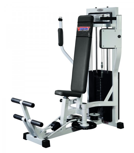 Грудь машина (грузоблочный) Предназначение: тренировка большой и малой мышц груди. Категория: профессиональный. Описание: профиль несущей конструкции 60х60х3 (мм). Тренажер окрашивается порошковой краской. Сидение изготовлено из многослойной фанеры (20 мм), в качестве наполнителя и обивки используется двухслойный пенополиуретан, устойчивый к усадке и высококачественная искусственная кожа. Регулировка сиденья позволяет заниматься на тренажере людям с разными ростовыми характеристиками. Грузоблочный стек тренажера состоит из 17 металлических плит весом по 5кг, и направляющих. Изменение нагрузки происходит при помощи селектора (фиксатора). Для приведения в движение грузов используется трос 5 мм в пвх оплетке с усилием на разрыв 500 кг с макс. Нагрузкой – 800кг. Скрытая система подшипников и амортизаторов обеспечивает плавность хода и шумопоглащение. Тренажер оснащен системой «легкого старта», памяткой технического обслуживания, амортизирующими подпятниками, не требующими крепления к полу. Габаритные размеры (мм): высота - 1620, длина - 1550, ширина - 1100. Общий вес – 196 кг. Вес грузоблока 85 кг.