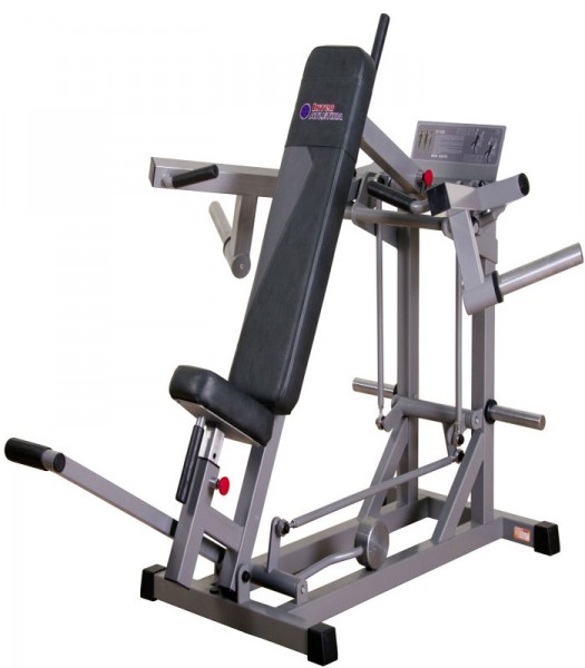 Тренажер - жим вверх (свободные веса). Предназначение: тренировка передних и средних пучков дельтовидных мышц и трицепсов. Категория: профессиональный. Описание: профиль несущей конструкции 60х60х3 (мм). Тренажер окрашивается порошковой краской. Сидение изготовлено из многослойной фанеры (20 мм), в качестве наполнителя и обивки используется двухслойный пенополиуретан, устойчивый к усадке и высококачественная искусственная кожа. Регулировка сиденья позволяет заниматься на тренажере людям с разными ростовыми характеристиками. Для удобства регулировки сидение снабжено пневмоамортизатором. Скрытая система подшипников и амортизаторов обеспечивает плавность хода и шумопоглащение. Тренажер оснащен системой «легкого старта», информационной табличкой по выполнению упражнения, памяткой технического обслуживания, двумя накопителями для дисков, амортизирующими подпятниками, не требующими крепления к полу. Габаритные размеры: высота - 1360, длина - 1900, ширина - 1690 вес – 116кг максимальная нагрузка 250 кг.