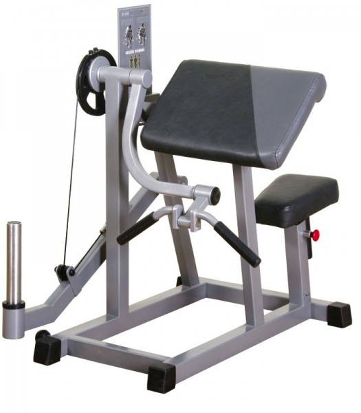 Бицепс - машина (свободные веса). Предназначение: тренировка мышц рук – бицепсов. Категория: профессиональный. Описание: профиль несущей конструкции 60х60х3 (мм). Тренажер окрашивается порошковой краской. Сидение изготовлено из многослойной фанеры (20 мм), в качестве наполнителя и обивки используется двухслойный пенополиуретан, устойчивый к усадке и высококачественная искусственная кожа. Регулировка сиденья позволяет заниматься на тренажере людям с разными ростовыми характеристиками. Для удобства регулировки сидение снабжено пневмоамортизатором. Скрытая система подшипников и амортизаторов обеспечивает плавность хода и шумопоглащение. Тренажер оснащен информационной табличкой по выполнению упражнения, памяткой технического обслуживания, амортизирующими подпятниками, не требующими крепления к полу. Габаритные размеры (мм): высота - 1040, длина - 1060, ширина - 860. вес конструкции –85 кг. максимальная нагрузка 125 кг.