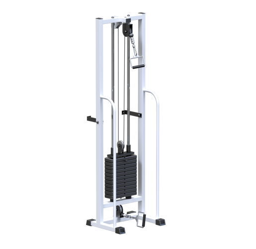 - Грузоблочный стек тренажера состоит из металлических обрезиненных плит весом по 5кг, и хромированных направляющих. Изменение нагрузки происходит при помощи металлической иглы(фиксатора). Для приведения в движение грузов используется трос 5 мм в пвх оплетке с усилием на разрыв 500 кг с максимальной нагрузкой – 800кг.