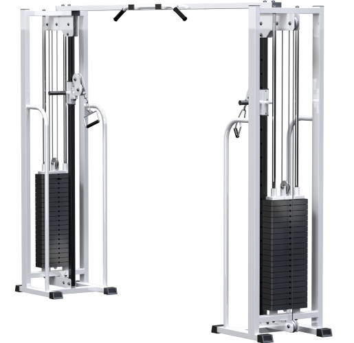 Нагрузка при выполнении упражнений создается с помощью грузоблоков. Грузоблочный стек состоит из грузов по 5кг и верхним грузом с направляющей. Устойчивая конструкция тренажера Кроссовер дает возможность проводить занятия со спортсменами любого уровня. Для устранения скольжения и увеличения устойчивости тренажер имеет резиновые подпятники.