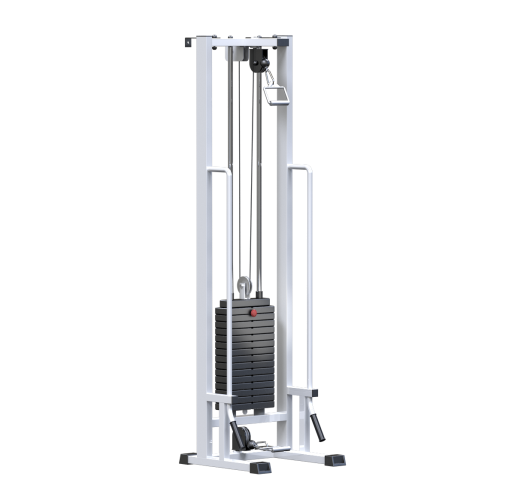 - Грузоблочный стек тренажера состоит из металлических обрезиненных плит весом по 5кг, и хромированных направляющих. Изменение нагрузки происходит при помощи металлической иглы(фиксатора). Для приведения в движение грузов используется трос 5 мм в пвх оплетке с усилием на разрыв 500 кг с максимальной нагрузкой – 800кг.