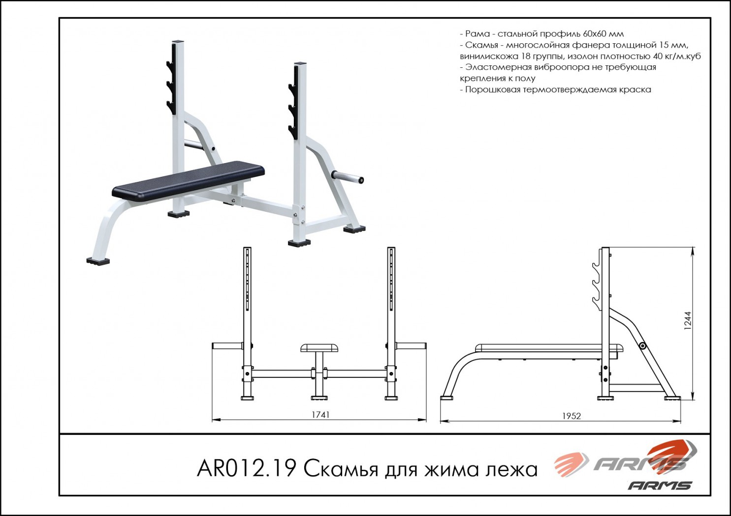 Силовой тренажер Скамья для жима лежа AR012.19 s-dostavka