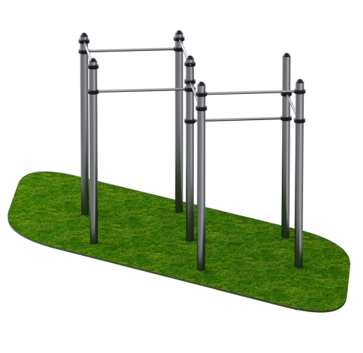 Технические характеристики: Длина – 3877 мм; Ширина – 1986 мм; Высота – 2490мм; Стойки из трубы диаметром 108мм, имеют пластиковые куполообразные заглушки; Перекладины из трубы диаметром 33мм, толщина стенки 3мм; Все соединения хомутовые; Травмобезопасная, антивандальная конструкция Порошковая термоотверждаемая краска устойчивая к атмосферному воздействию Стойки-опоры монтируется на глубину не менее 700мм;