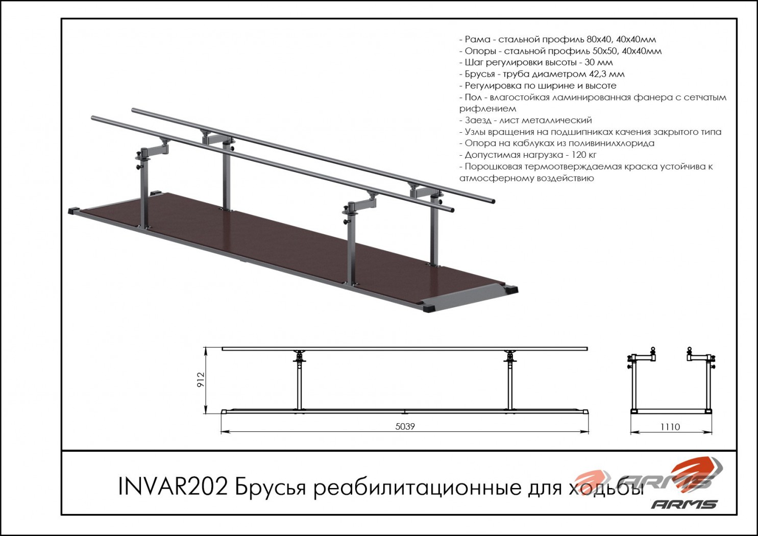 Брусья реабилитационные для ходьбы УЗСИ ARMS INVAR202 узси