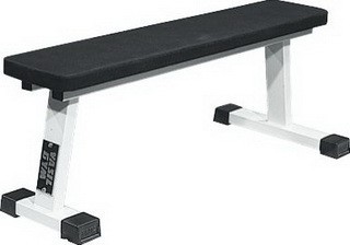 Скамейка горизонтальная используется как вспомогательный снаряд для выполнения различных упражнений: жим штанги, гантелей; сведения – разведение гантелей; тяга гантели в наклоне и многих других.